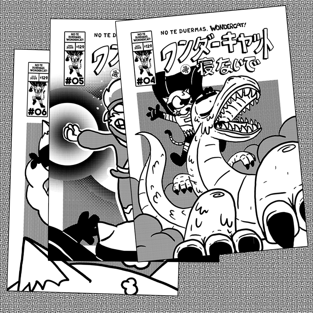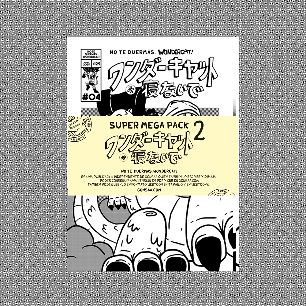 Super Mega Pack de 3 CapÃtulos de mi FANZINE MANGA “No Te Duermas, WonderCat!”. Un total de 60 páginas en blanco y negro en papel obra. Incluye los capÃtulos 4,5 y 6. “El Mundo Perdido”, “Conflicto Laboral” y “Reducción de Ruidos”.